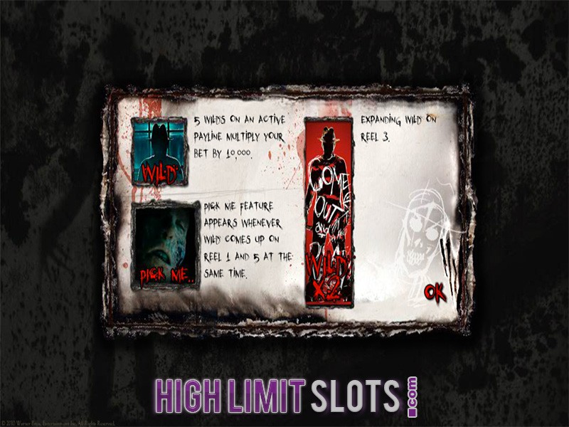 Allowing bets up to $300 per single spin, A Nightmare of Elm Street is likely to appeal to high rollers, especially as the 5 reel 30 payline video slot also comes with quite a few bonus rounds. And while five Wilds award 10,000 coins, you can also trigger Never Sleep Again bonus game, up to 30 free spins, Pick Me feature and Expanding Wilds.