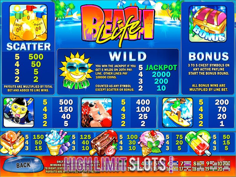 Beach Life is one slot you cannot afford to miss out on given the $8.2 million it has paid out to one lucky player in 2012. Its progressive jackpot averages at more than $3 million, which should be enough incentive to have a go at this 5 reel 20 payline video slot.