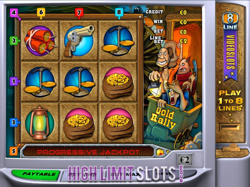 - William Hill Casino. At this well- known and reputable online casino you can check out the following Playtech- developed progressive jackpot slots: Gold Rally, Beach Life and Magic Slots. Gold Rally is a classic 3 reel, 8 pay-line slot whose jackpot currently goes over 3 millions. The second 5 reel, 20 pay-line video slot has a jackpot of over 500 thousand dollars, while the last slot is a 3 reel, 1 pay-line classic slot with a current jackpot of over 11 thousand dollars.